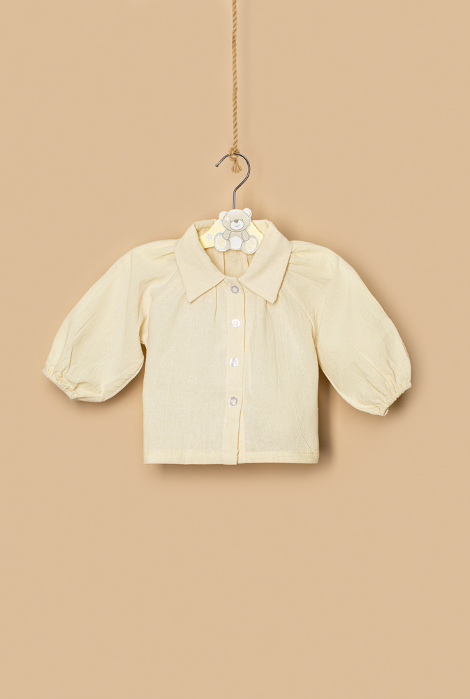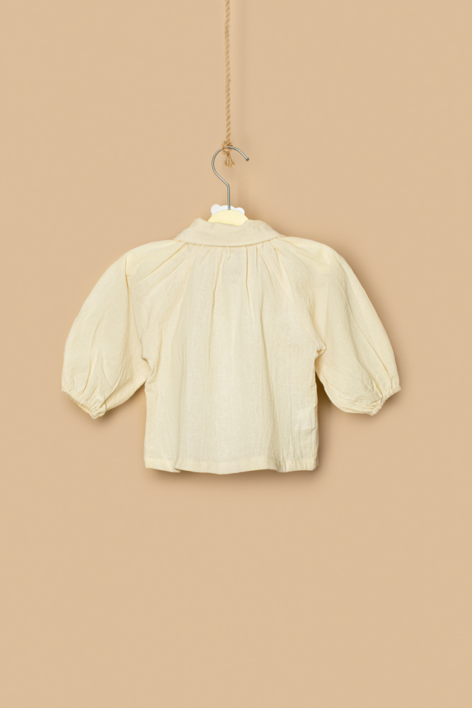 Camasa crem din bumbac 100%, maneci lungi si bufante cu elastic la mansete. Inchiderea se face in fata, cu nasturi!